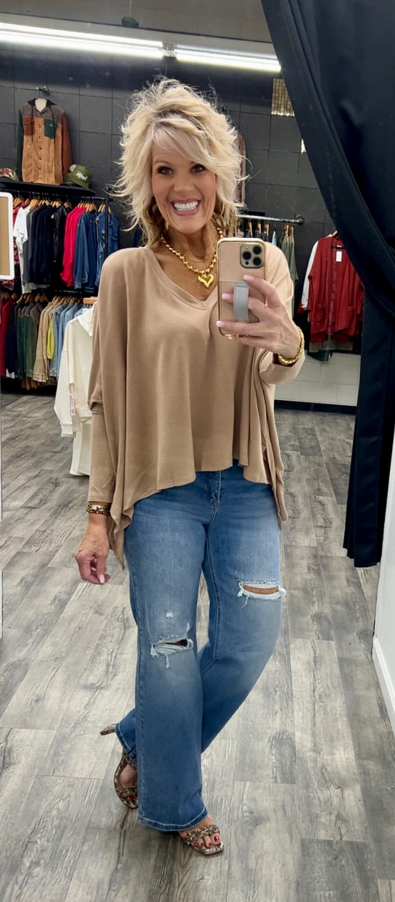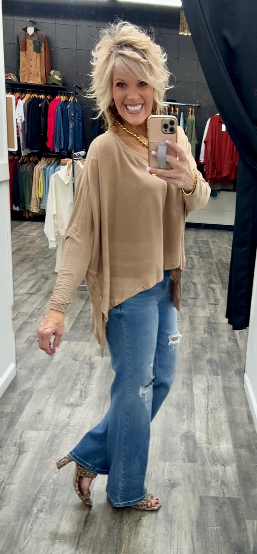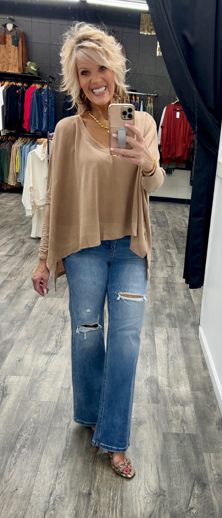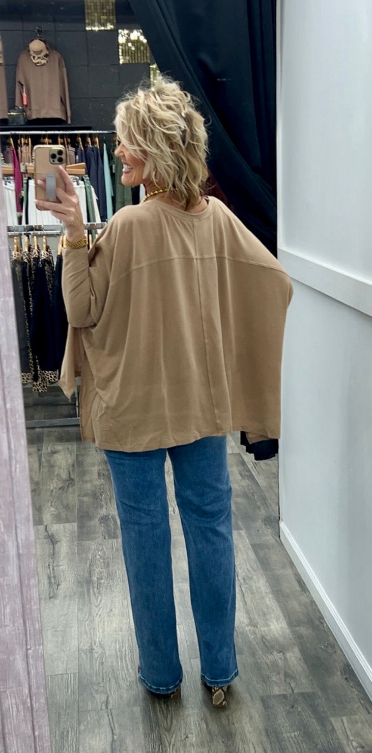 V neck top with a poncho style with long sleeves