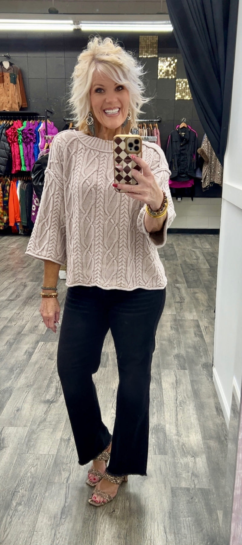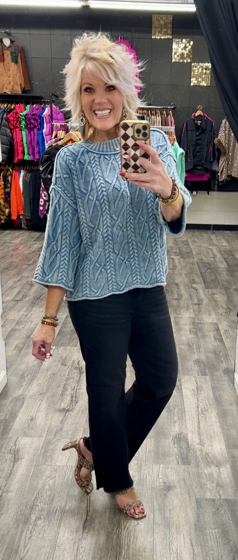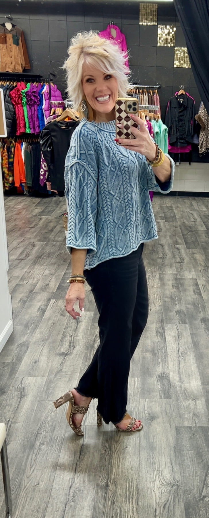 Cable knit mineral washed sweater