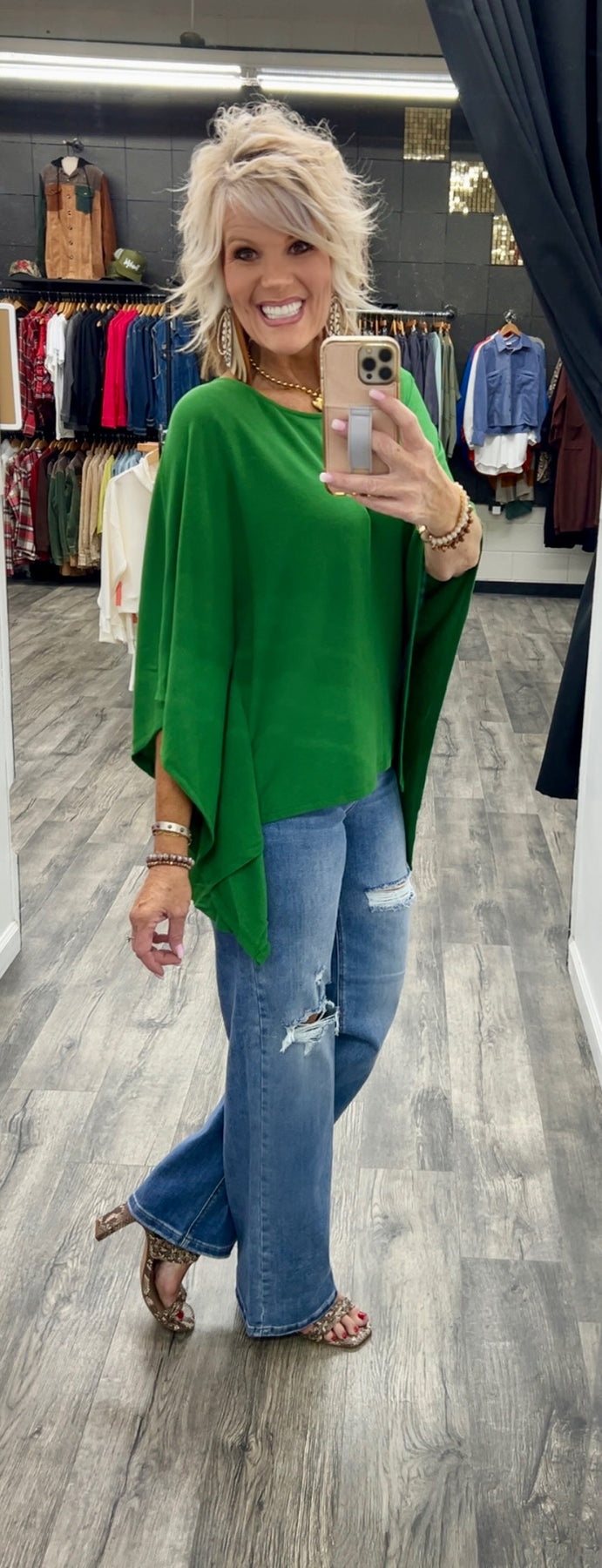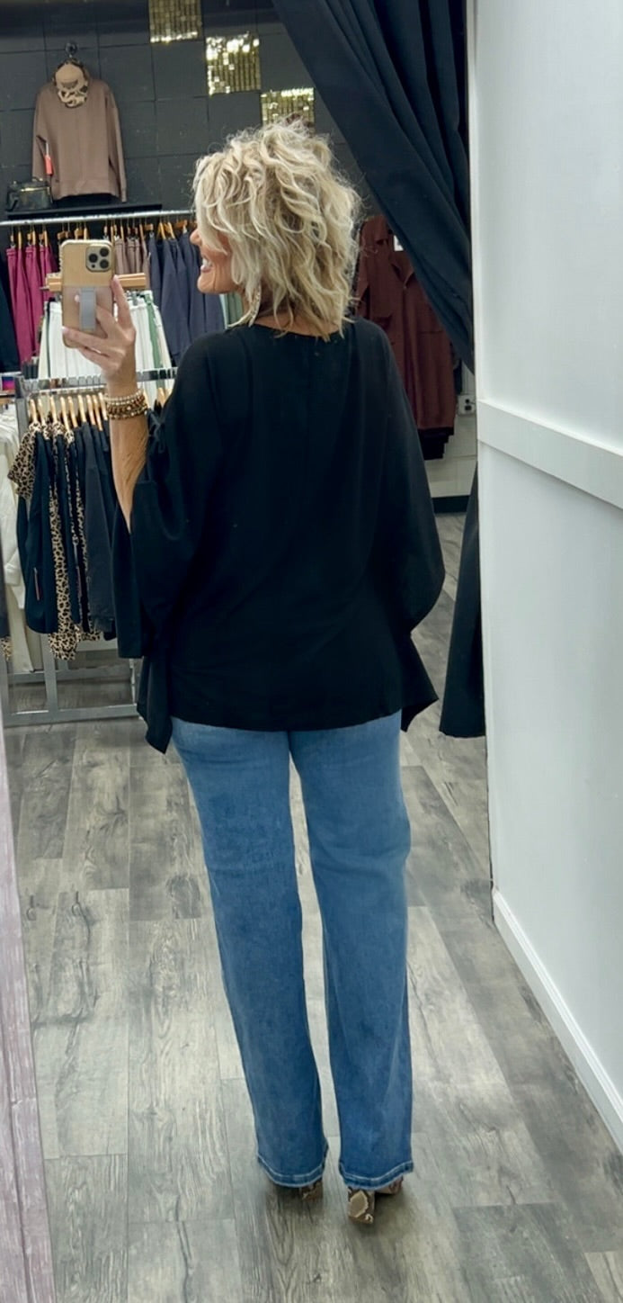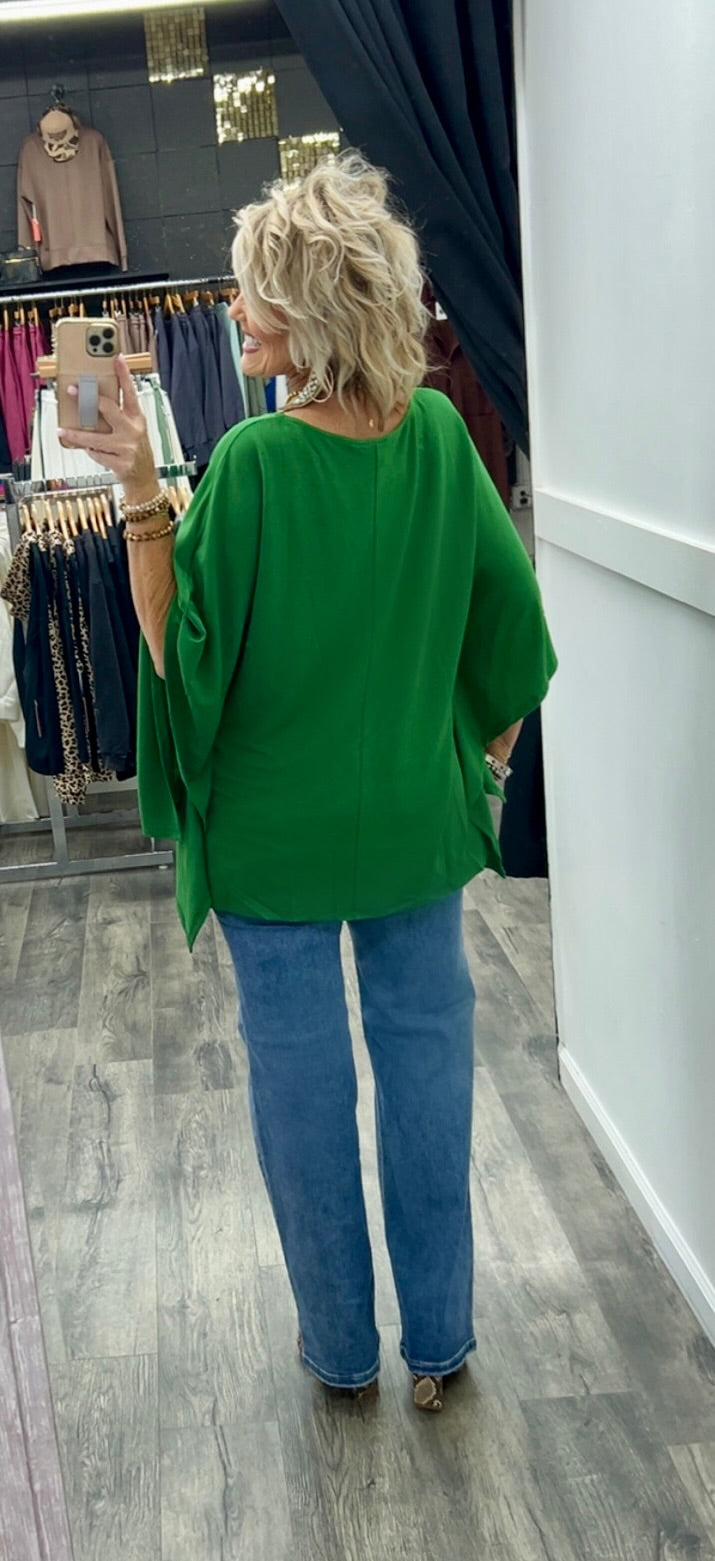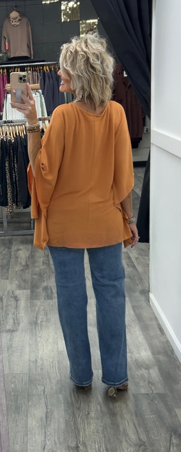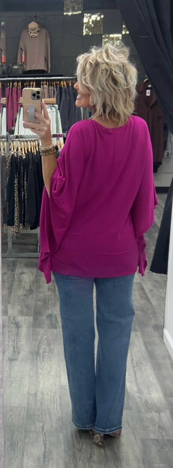 Poncho style top made with polyester, rayon and spandex