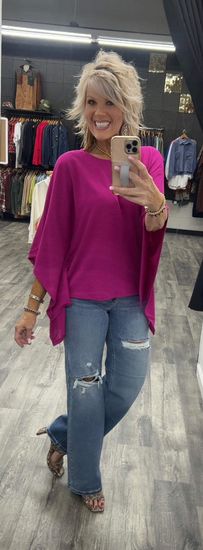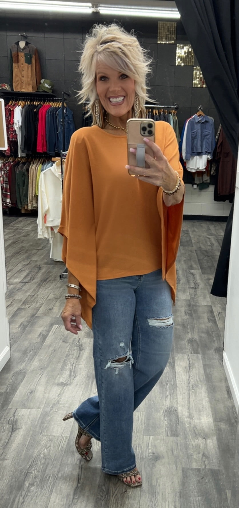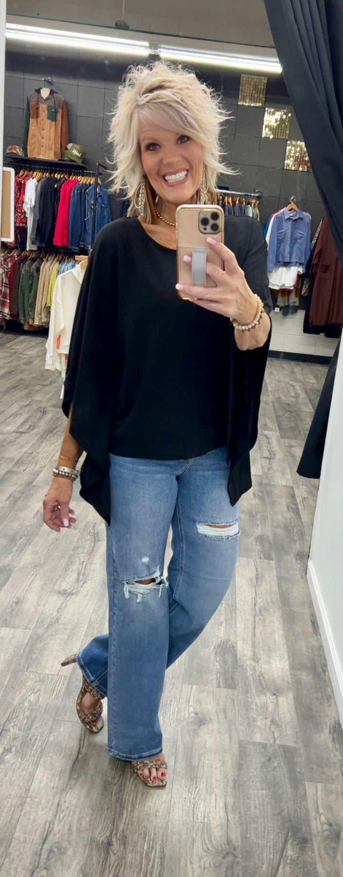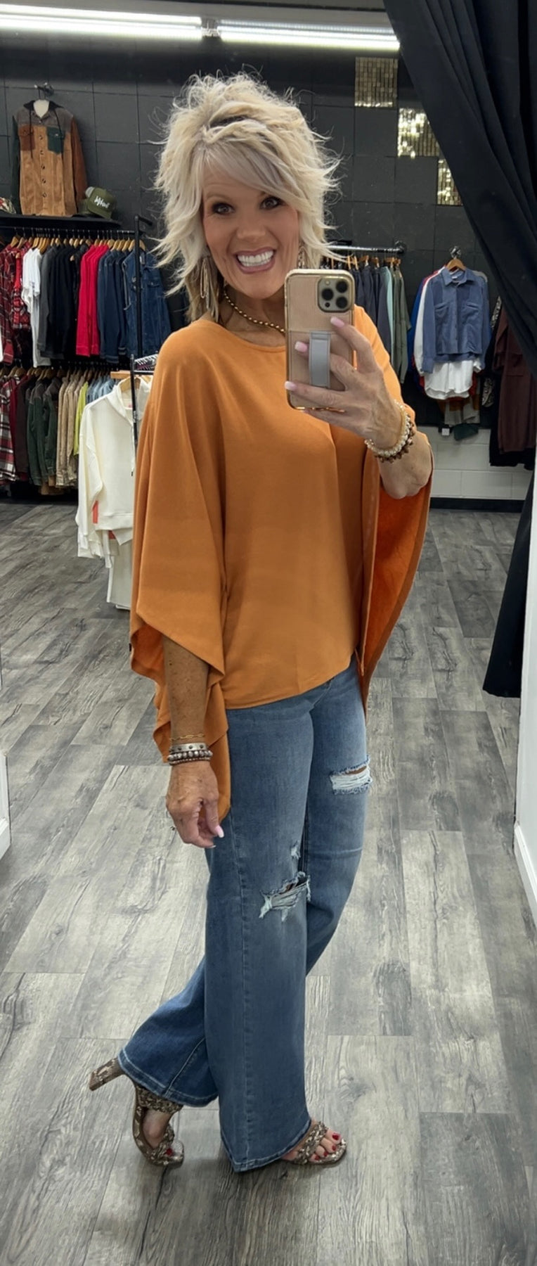 Poncho style top made with polyester, rayon and spandex
