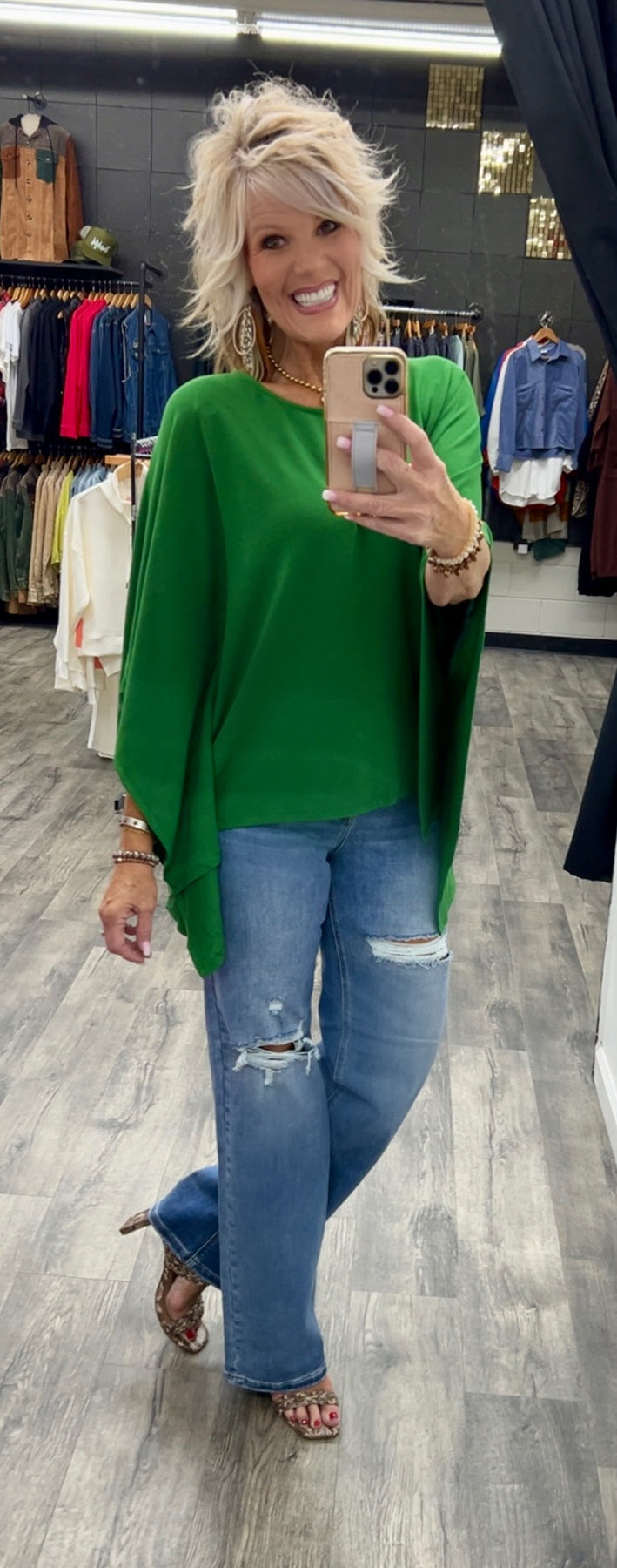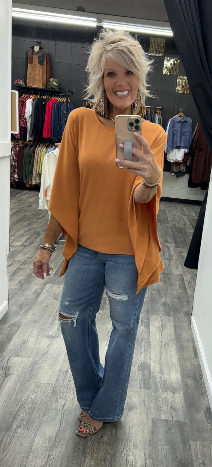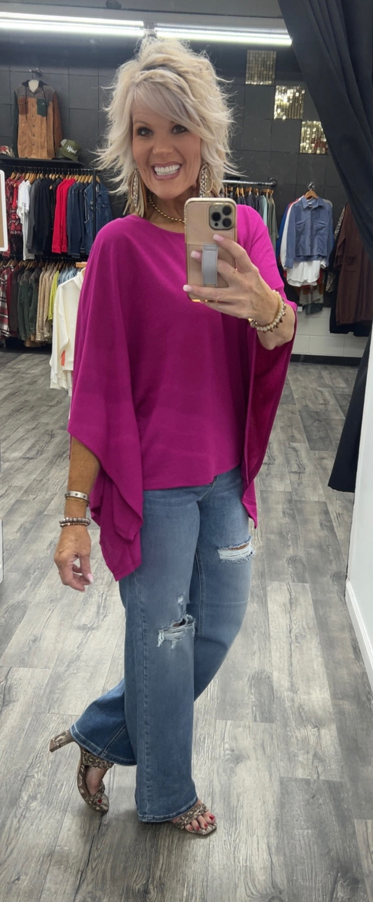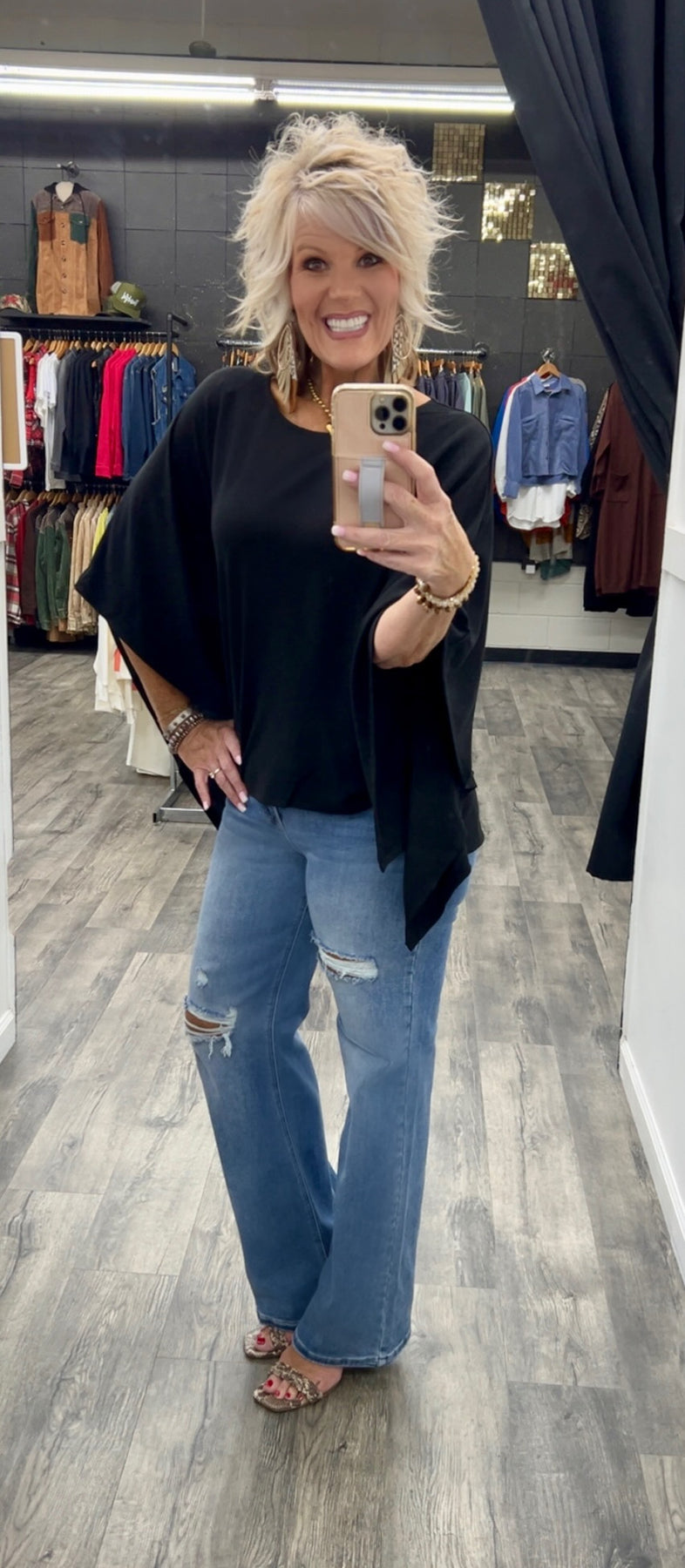 Poncho style top made with polyester, rayon and spandex
