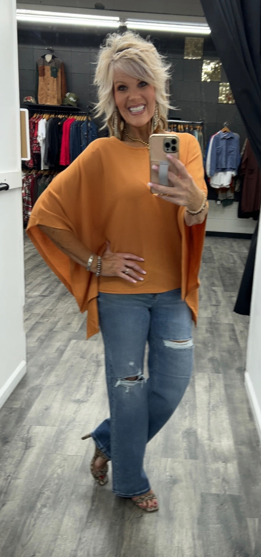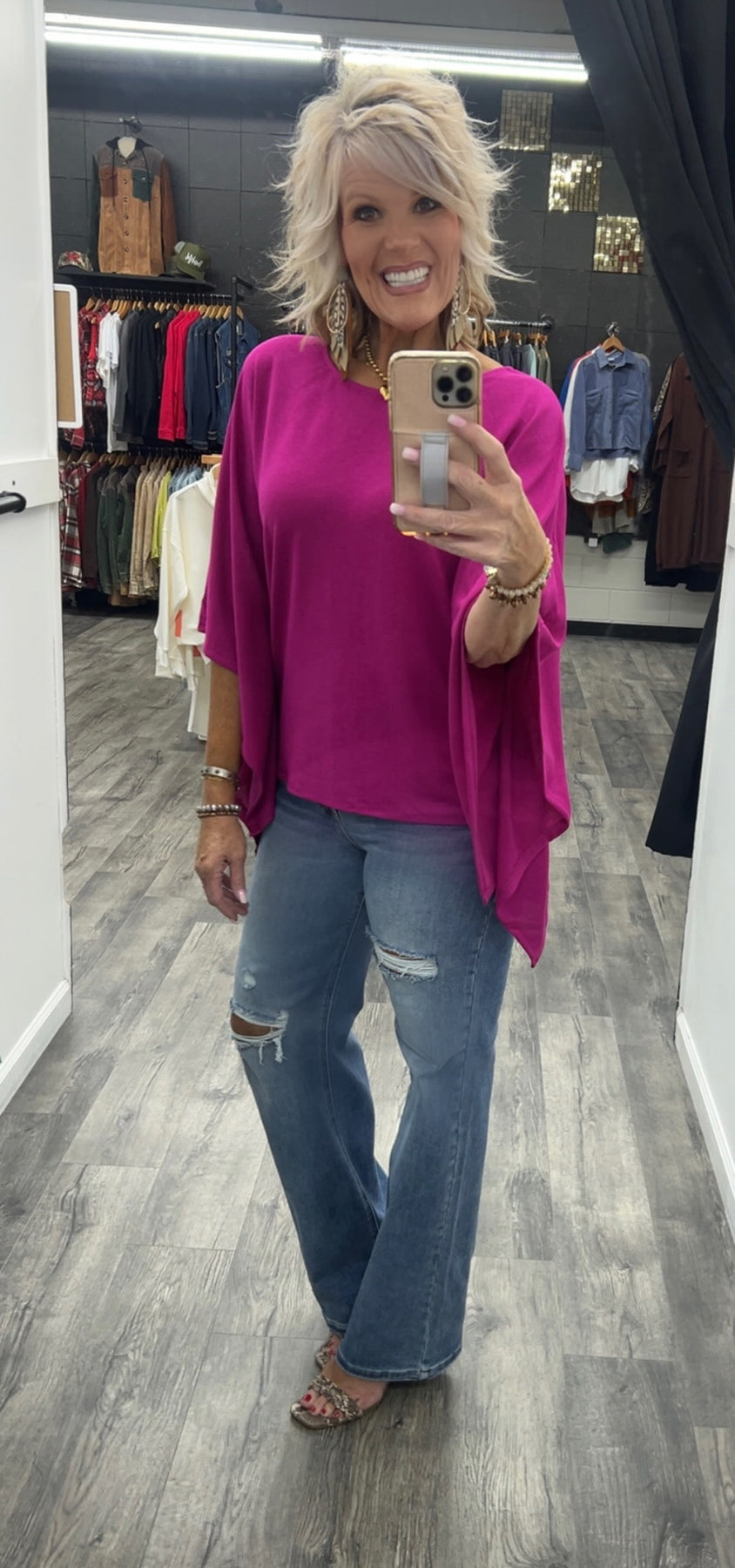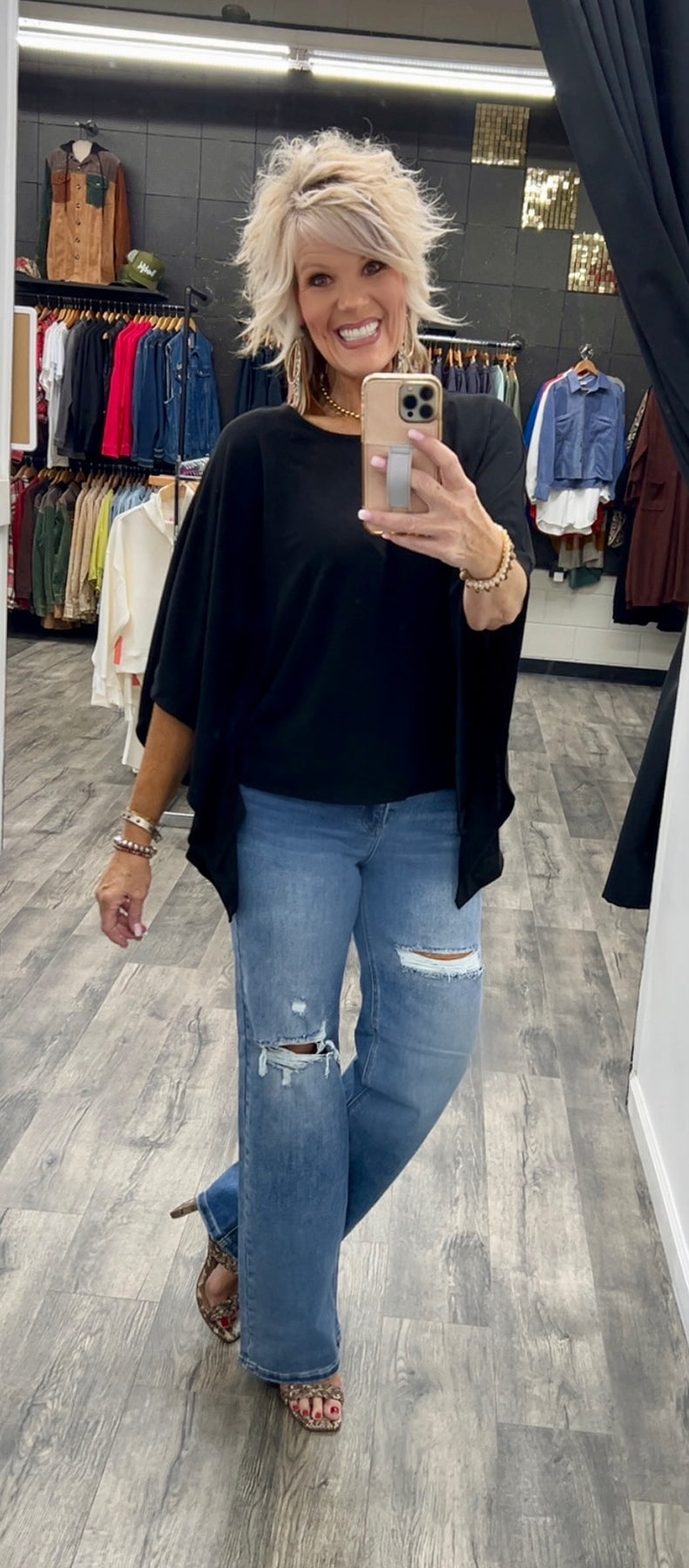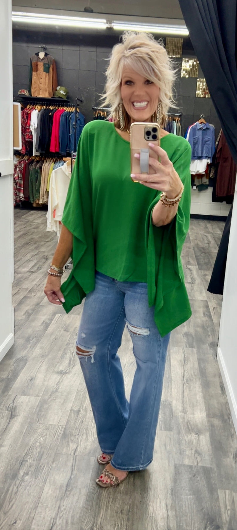 Poncho style top made with polyester, rayon and spandex